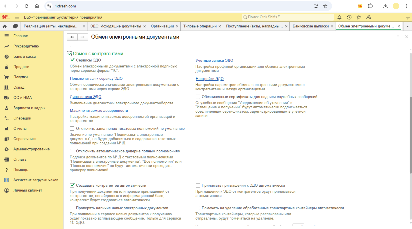 Можно подключить 1С-ЭДО в 1С:Фреш?
